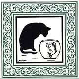 Customer Review :CAT TILE - CAT WALL PLAQUE - CAT TRIVETS WITH RUBY VICTORIAN BORDER: CA-7J by Besheer Art Tile, Bedford, N.H. U.S.A. Features Free Shipping